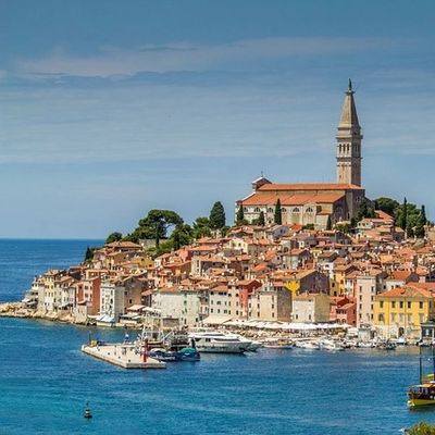 Rovinj (Rovigno in Italian) is coastal Istria’s star attraction. While it can get overrun with tourists in summer and there aren't a lot of actual sights, it remains an intensely charming place. The old town is contained within an egg-shaped peninsula, webbed with steep cobbled streets and small squares, and punctuated by a tall church tower rising from the highest point. Originally an island, it was only connected to the mainland in 1763 when the narrow channel separating it was filled.